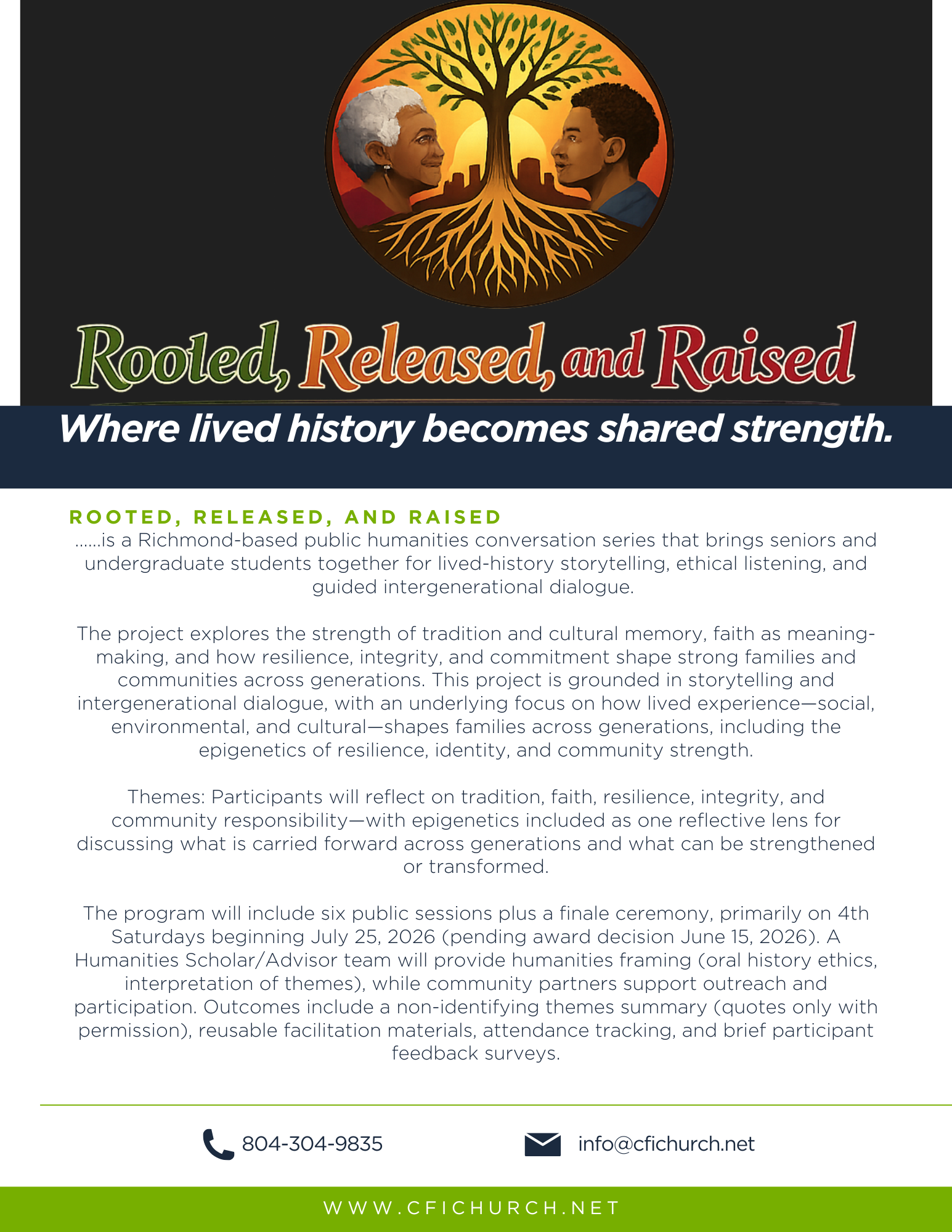 Interested in hosting a Rooted, Released, and Raised session? Share your venue details (location, capacity, accessibility, and available dates), and we’ll follow up to discuss scheduling and requirements.